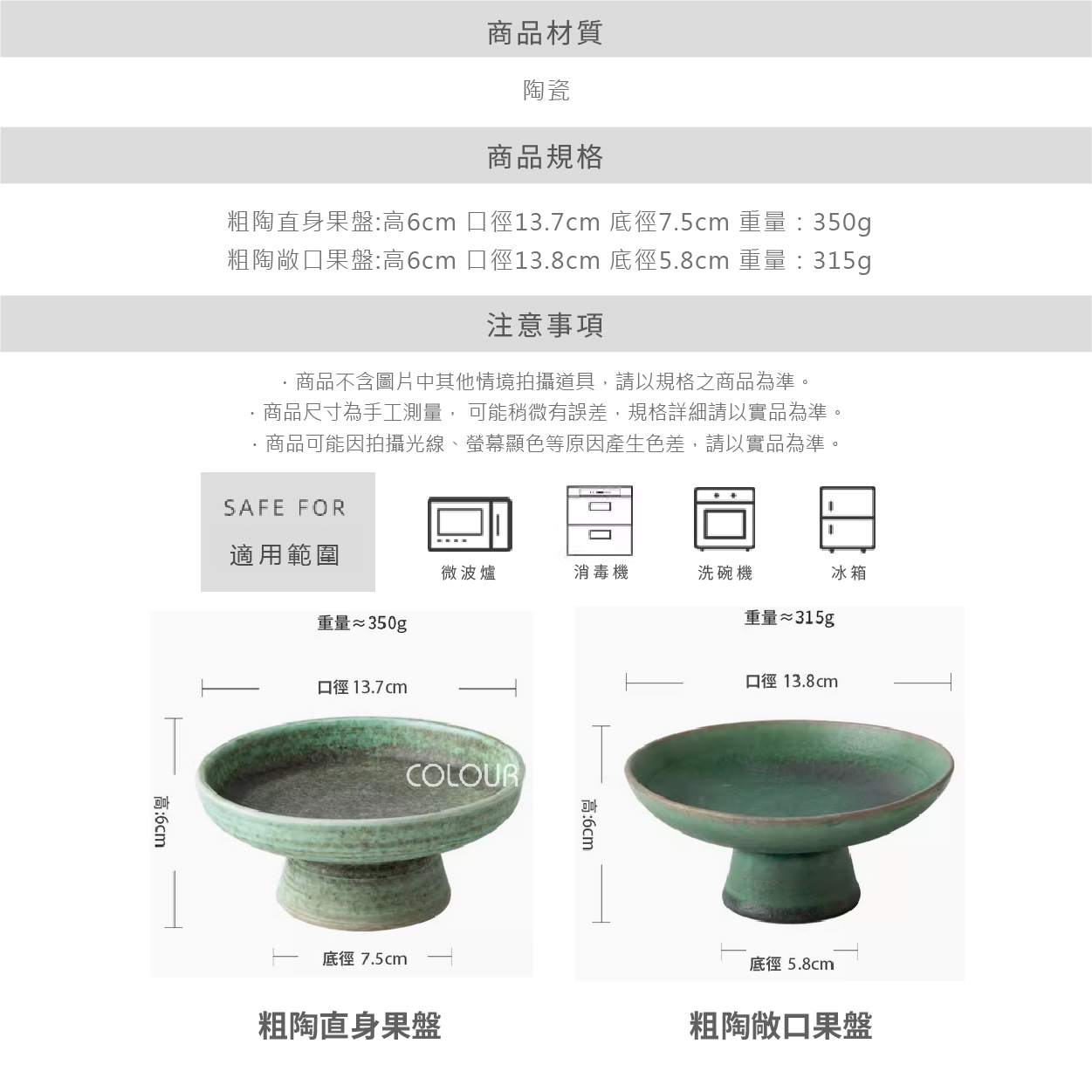 粗陶蒼翠綠高腳茶點盤 採用天然粗陶材質,質樸自然 綠色的釉面,彷彿山林中的翠綠 清新自然,令人心曠神怡 不僅適用於茶點、點心的擺放,更可以作為裝飾品 點綴您的家居空間,營造出舒適愜意的氛圍 商品尺寸: A款:口徑13.7cm 底徑7.5cm 高6cm B款:口徑13.8cm 底徑5.8cm 高6cm