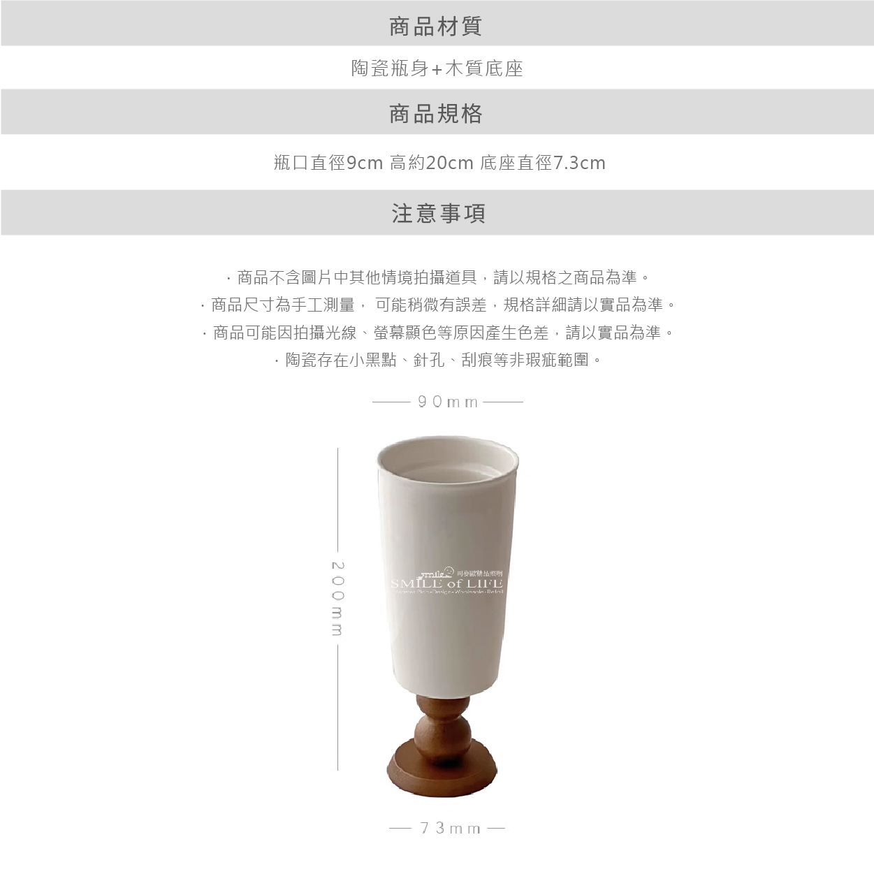 材質 ▸ 陶瓷瓶身 + 木質底座