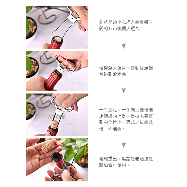 • 不破壞酒瓶塞完整拔出 不怕有木削掉入瓶中