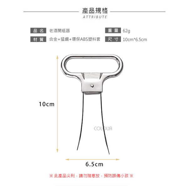 • 適合開啟各類型瓶塞,尤其適用於陳年的舊酒軟木塞