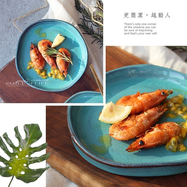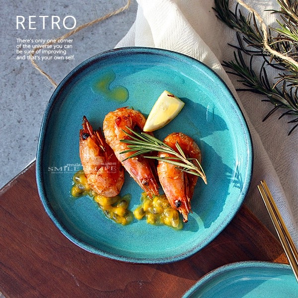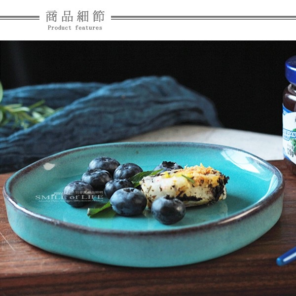 不規則異形陶瓷餐盤 創意手工陶瓷盤,不規則異形陶瓷餐盤 採用不規則的延邊設計,燒製成孔雀藍的顏色 再加上復古做工,給您全新的視覺感受 尺寸(約)▸12cm*11cm