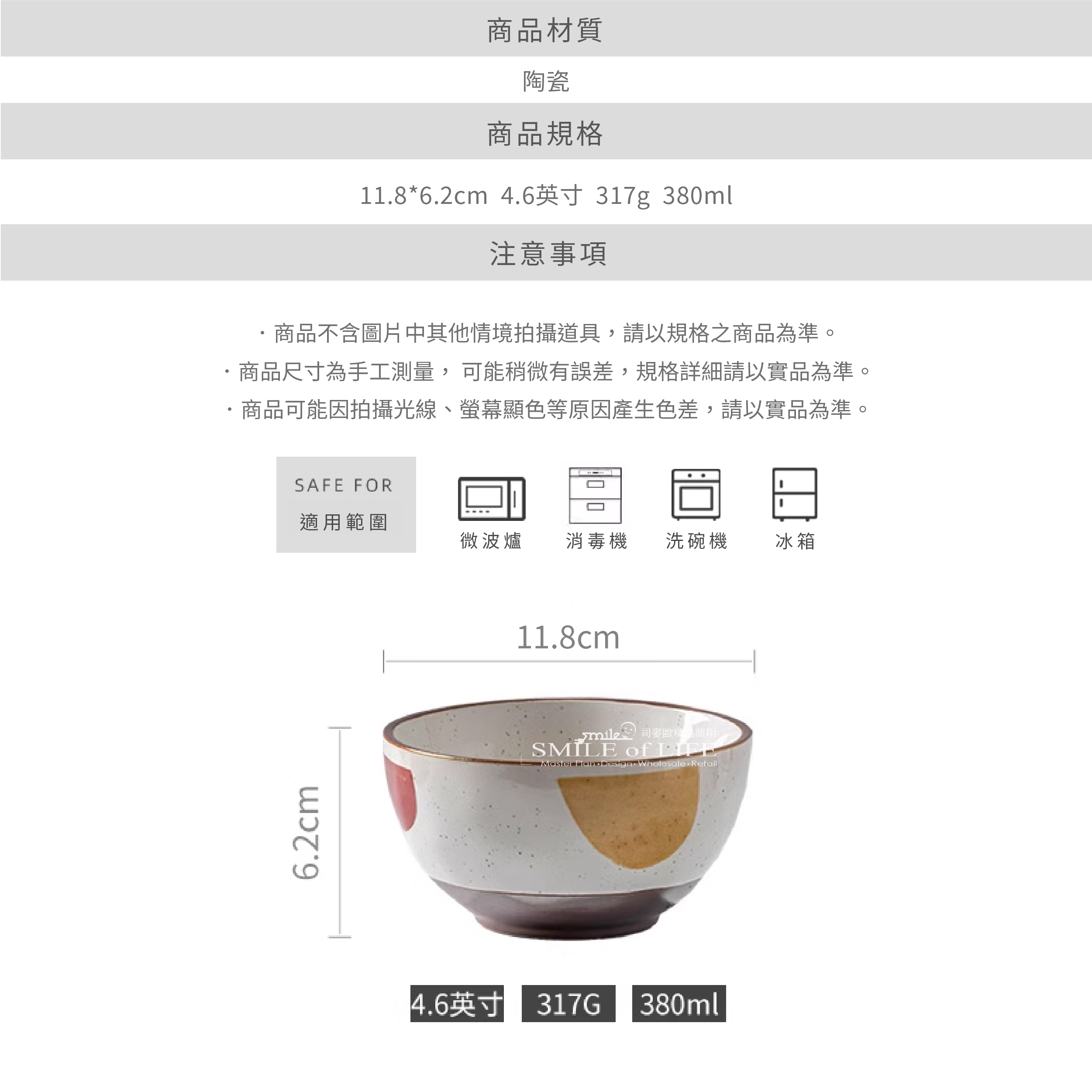 日式繪畫-米飯碗4.6吋 搭配柔和的色彩與優雅的圖案 讓餐桌充滿和風氣息 尺寸適中,手感舒適 給您的每一餐多一分儀式感 ⭕洗碗機 ⭕微波爐 ❌烤箱 ✦微瑕商品須知✦ 有明顯的黑點、凹凸點、氣孔、髒印、刮痕 釉色不均等情形,不影響正常使用 下單即為同意上述問題不接受退換貨 商品尺寸: 口徑11.8cm 高6.2cm![]()
