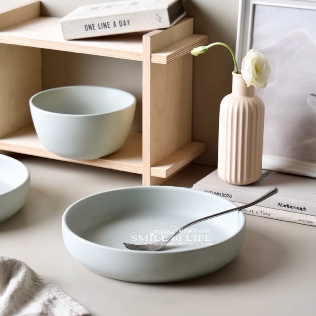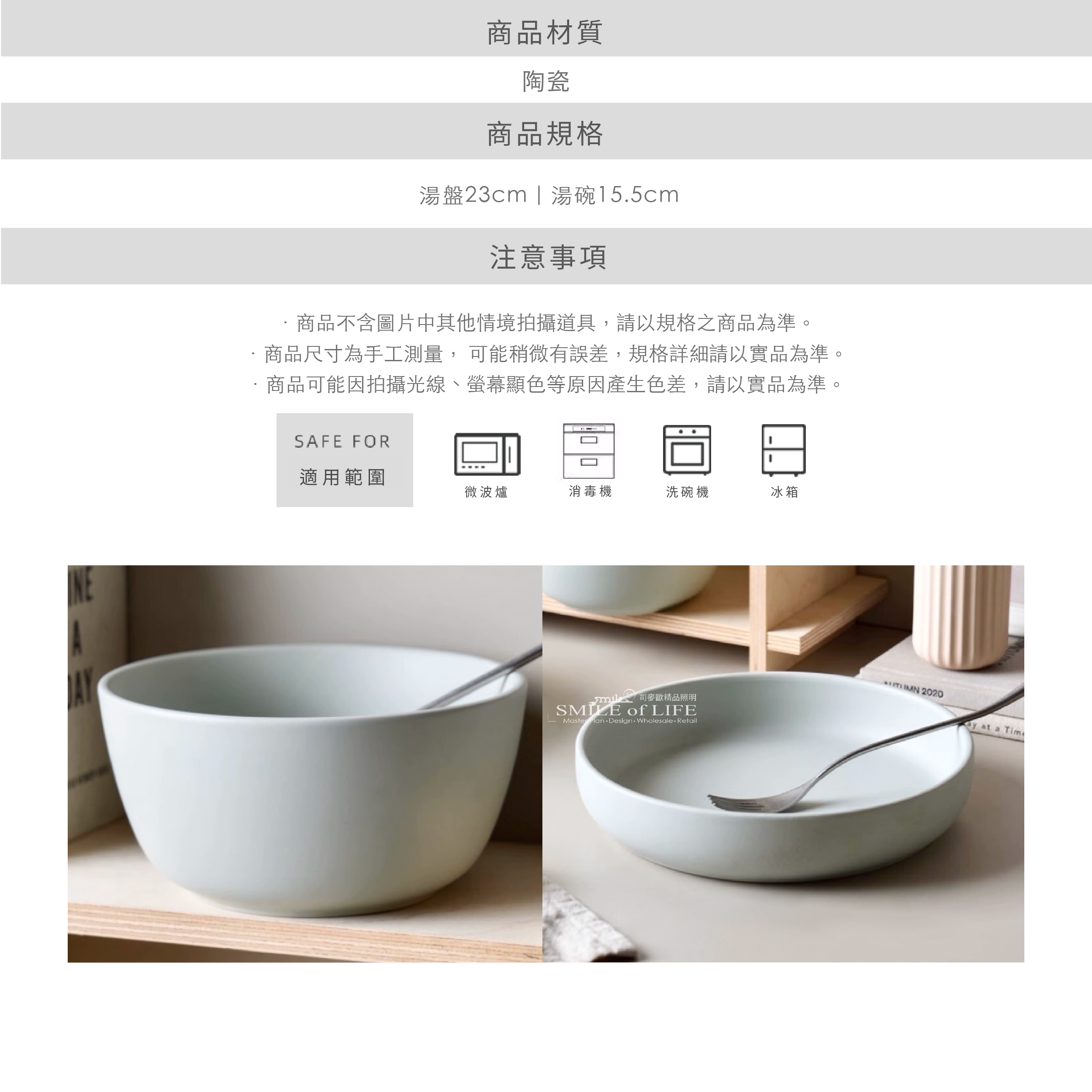 【微瑕】簡約霧青系列碗盤 採用柔和的霧青色調,營造出清新、冷靜的氛圍, 將現代簡約設計與優雅色彩結合的餐具系列。 無論是在日常用餐還是精緻的聚會場合, 都能為你的用餐空間帶來清新自然的感覺。 ⭕洗碗機 ⭕微波爐 ❌烤箱 ✦微瑕商品須知✦ 有明顯的黑點、凹凸點、氣孔、髒印、刮痕 釉色不均、色差等情形,不影響正常使用 下單即為同意上述問題不接受退換貨 商品尺寸:湯盤:23cm、湯碗:15.5cm