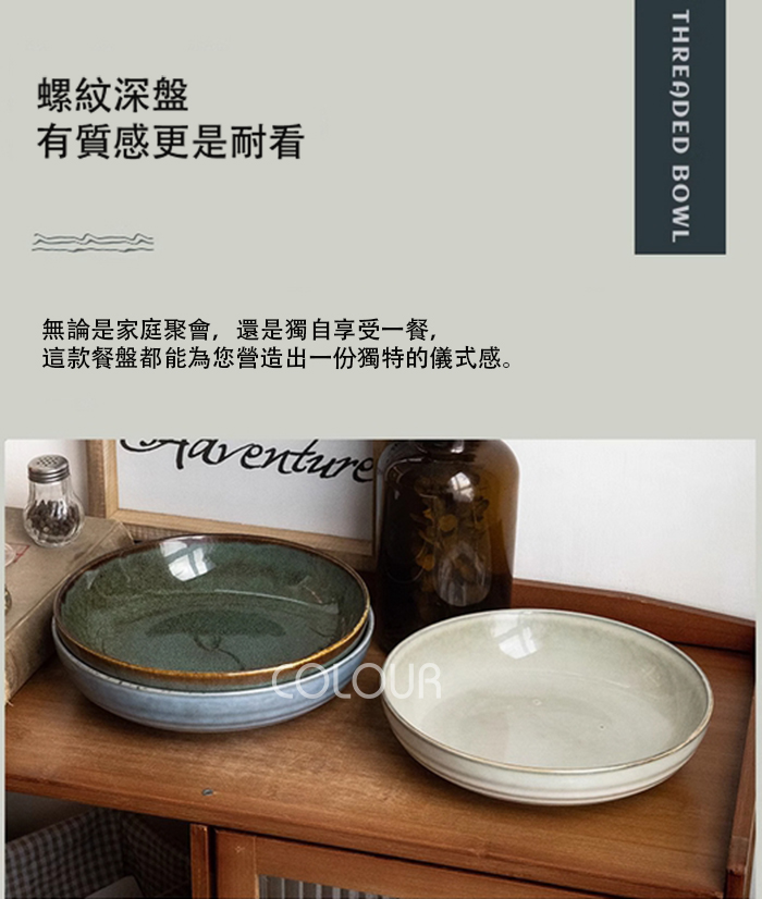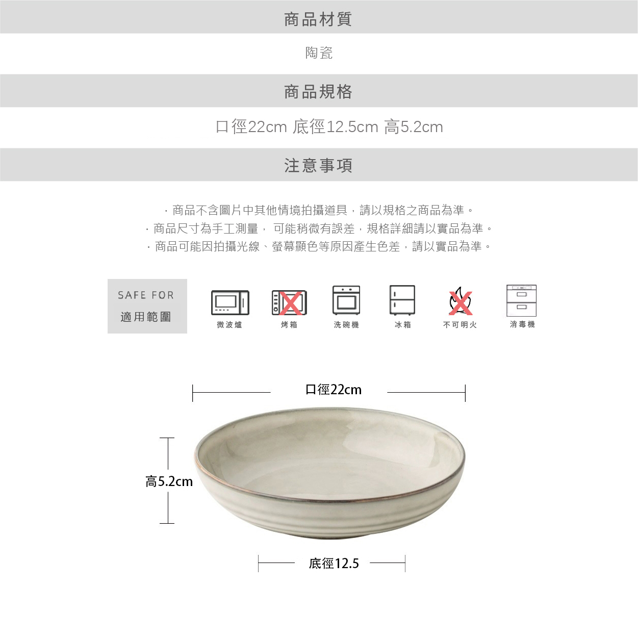 螺紋陶瓷深盤.小碗.直升淺盤 猶如藝術品般的設計 賦予您的餐桌更多的風采 這款深盤採用不規則的螺紋設計 營造出獨特的質感和視覺效果 ⭕洗碗機 ⭕微波爐 ❌烤箱 商品尺寸: 深盤-口徑22cm 底徑12.5cm 高5.2cm 小碗-口徑14cm 底徑7.4cm 高4.6cm 直升淺盤-口徑21cm 高3.9cm![]()