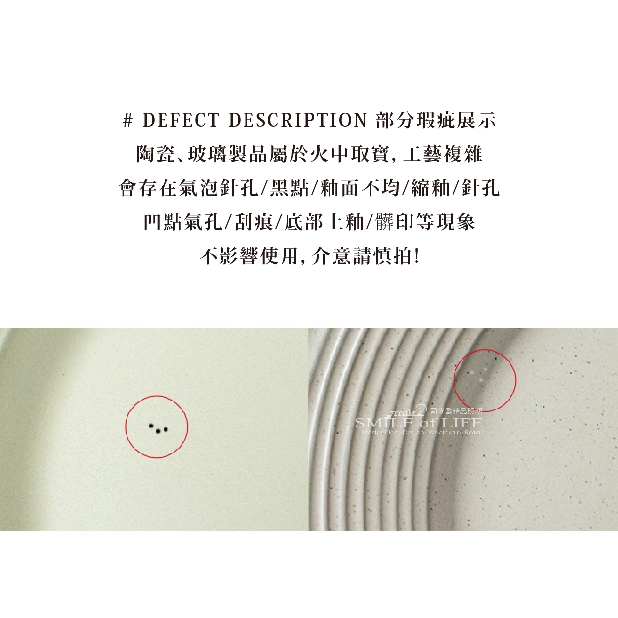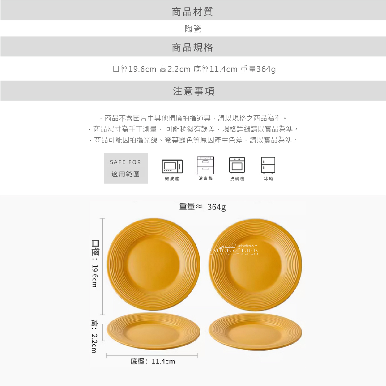 【微瑕買一送一】艾克黃螺紋陶瓷盤 獨特的螺紋紋理和仿古黃色 為您的餐桌增添一抹亮色 高品質陶瓷材質,堅固耐用,易於清洗 無論是日常用餐還是商用,這款平盤都是理想之選 盡顯您的非凡品味與生活格調 ✦微瑕商品須知✦ 有明顯的黑點、凹凸點、氣孔、髒印、刮痕 釉面不均等情形,不影響正常使用 下單即為同意上述問題不接受退換貨 商品尺寸:口徑19.6cm 底徑11.4cm 高2.2cm