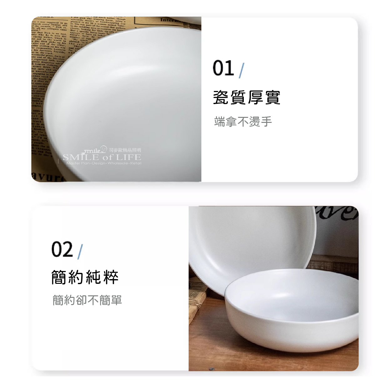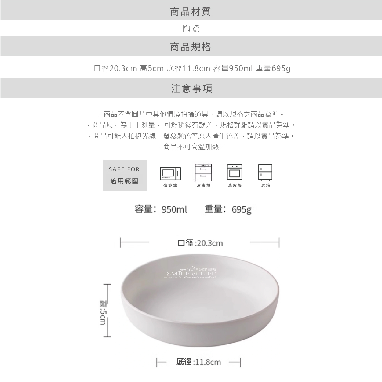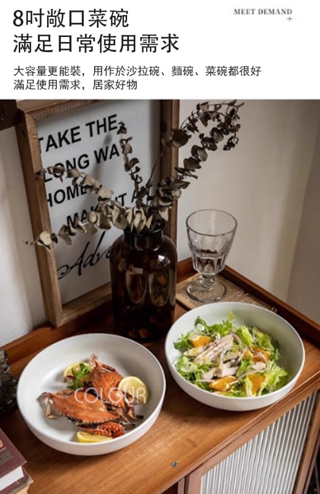 8吋霧面白陶瓷菜碗 極簡美學簡 ● 簡約的霧面白色外觀,完美搭配任何餐桌佈置。 無論您是舉辦晚宴還是享受靜謐的家庭用餐, 我們的霧面白陶瓷菜碗都能為每個場合增添現代優雅的氣息。 提升您的料理展示,給客人留下深刻印象。 ⭕洗碗機 ⭕微波爐 ❌烤箱 ✦微瑕商品須知✦ 有明顯的黑點、凹凸點、氣孔、髒印、刮痕 釉面不均等情形,不影響正常使用 下單即為同意上述問題不接受退換貨 商品尺寸:口徑20.3cm 底徑11.8cm 高5cm