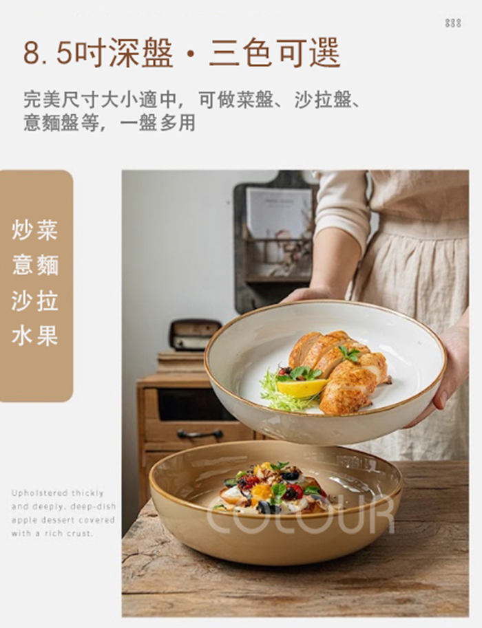 朝霧系列8.5吋深盤 是您餐桌上的完美點綴 此系列深盤以其精緻的設計和優雅的色彩 為您的餐桌增添一份獨特的魅力 - 選擇朝霧系列 8.5 吋深盤,不僅是選擇了一件實用的餐具 更是選擇了一份優雅與品味。無論是日常用餐還是特殊場合 這款深盤都能讓您的每一頓飯都變得更加美好 快來挑選您喜愛的顏色,讓它成為您餐桌上的新寵! ⭕洗碗機 ⭕微波爐 ❌烤箱 - ✦微瑕商品須知✦ 有明顯的黑點、凹凸點、氣孔、髒印、刮痕 釉面不均等情形,不影響正常使用 下單即為同意上述問題不接受退換貨 商品尺寸:口徑22cm 底徑15.5cm 高5.3cm![]()