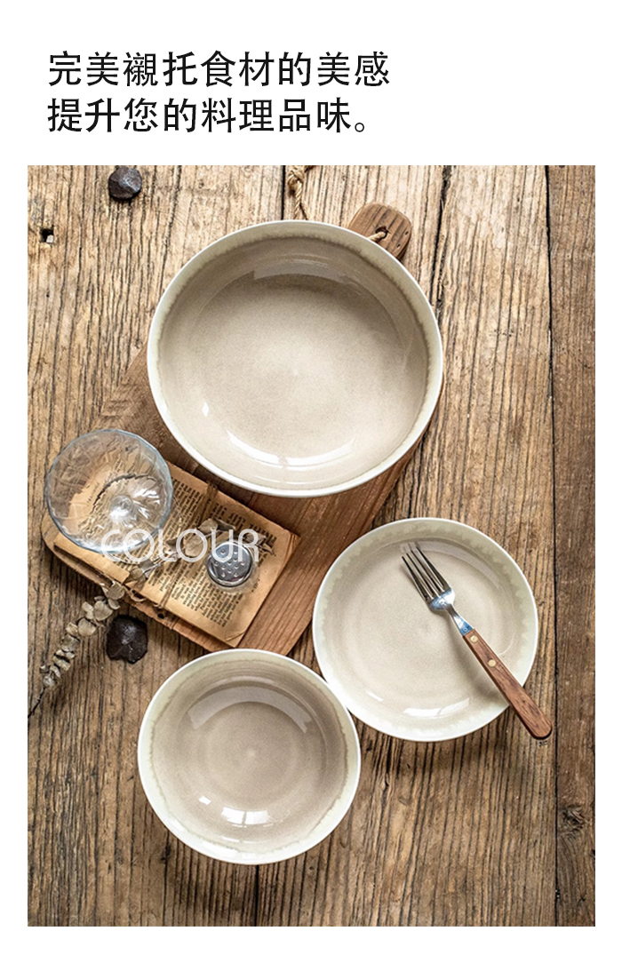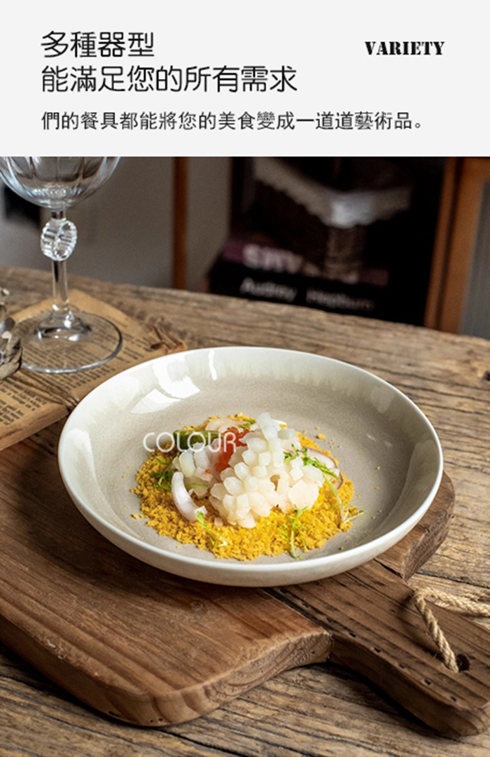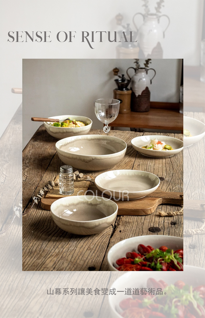 山暮系列不規則碗盤 以自然山巒與日暮黃昏的美景為靈感, 呈現出一種古樸而詩意的美感。 從傳統的中式菜餚到創意西式料理,均能完美呈現。 其獨特的外觀設計能夠提升食物的視覺效果, 使每一餐都充滿藝術感與儀式感。 更是一件藝術品,為您的用餐時光增添一絲自然的寧靜與和諧。 ⭕洗碗機 ⭕微波爐 ❌烤箱 - ✦微瑕商品須知✦ 有明顯的黑點、凹凸點、氣孔、髒印、刮痕 釉面不均等情形,不影響正常使用 下單即為同意上述問題不接受退換貨 商品尺寸: 6.5吋不規則麵碗:口徑17cm 底徑8.5cm 高6.3cm 8吋不規則平盤:口徑20.5cm 底徑13.5cm 高1.5cm 8吋圓盤:口徑21.8cm 底徑13cm 高2cm 8.5吋不規則淺盤:口徑22cm 底徑15cm 高4.2cm 14吋大魚盤:口徑35cm 底徑26.5cm 高3cm 13吋不規則大果盤:口徑33cm 底徑22cm 高6cm![]()
