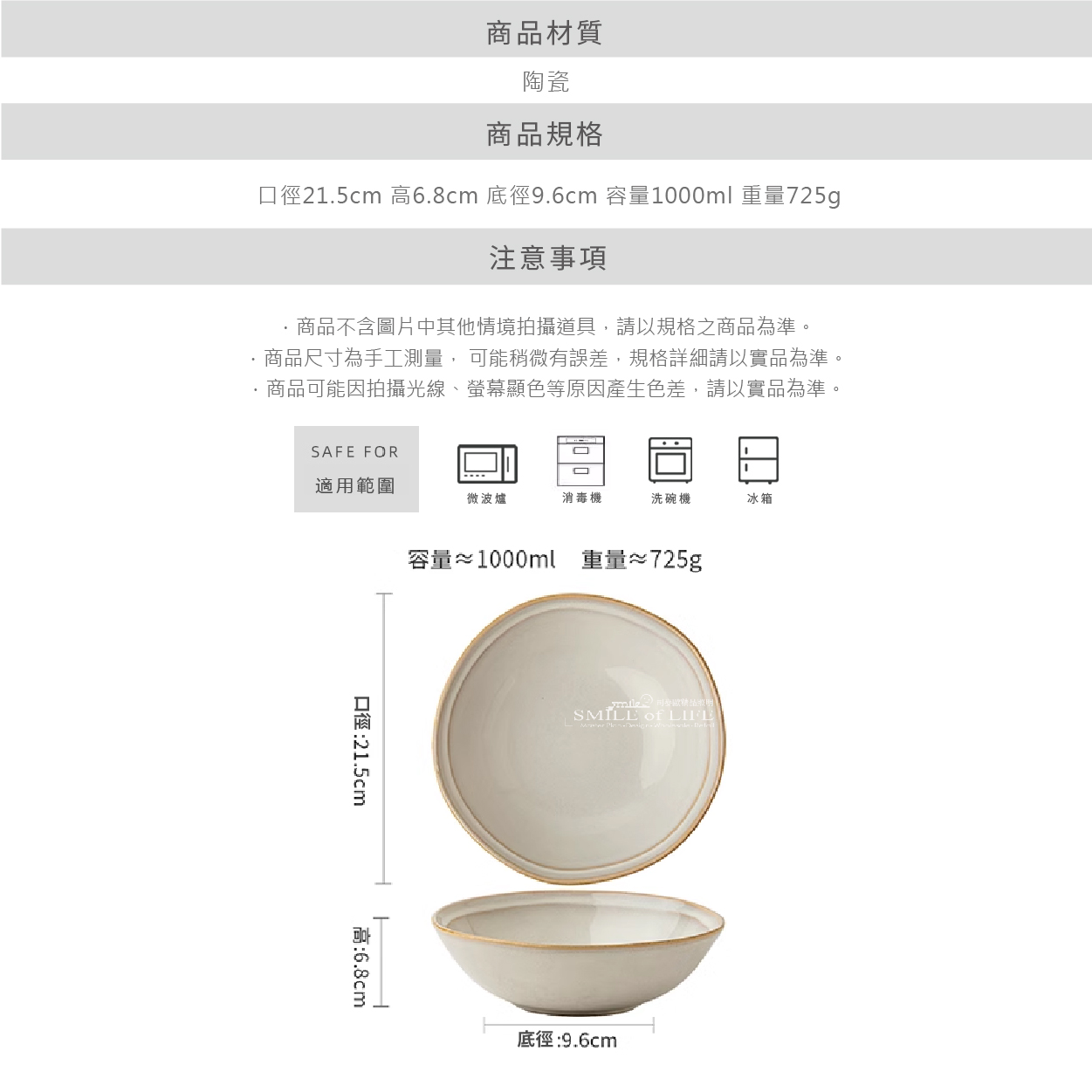 8.5吋不規則敞口大碗 無論是用來盛裝湯品、沙拉,還是各種美食, 這款大碗都能完美展現您精心準備的每一道菜餚。 它既適合日常使用,也能在特殊場合中,為您的餐桌增色不少。 選擇我們的8.5吋不規則敞口大碗, 讓您的餐桌瞬間變得不一樣,體驗美食與藝術的完美融合。 ⭕洗碗機 ⭕微波爐 ❌烤箱 ✦微瑕商品須知✦ 有明顯的黑點、凹凸點、氣孔、髒印、刮痕 釉面不均等情形,不影響正常使用 下單即為同意上述問題不接受退換貨 商品尺寸:口徑21.5cm 底徑7.6cm 高6.8cm![]()