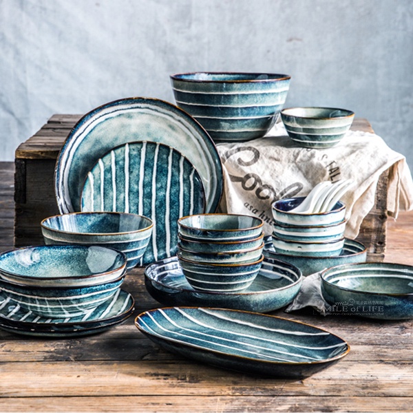 青黛不規則西餐陶瓷餐具 本系列採用一種漸變色釉、亮光 經過高溫的洗禮之後 釉色呈現出青山綠水般的溫潤 經過幾十道工藝的打磨 手繪的紋路流暢自然 【商品尺寸】 6.7寸麵碗-直徑約16.8cm 高8.7cm 6.7寸缽碗-直徑約17.1cm 高4.8cm 7.8寸湯碗-直徑約20cm 高11cm 8.5寸缽碗-直徑約22cm 高4.8cm 4.25寸三角碗-直徑約10.3cm 高5.4cm