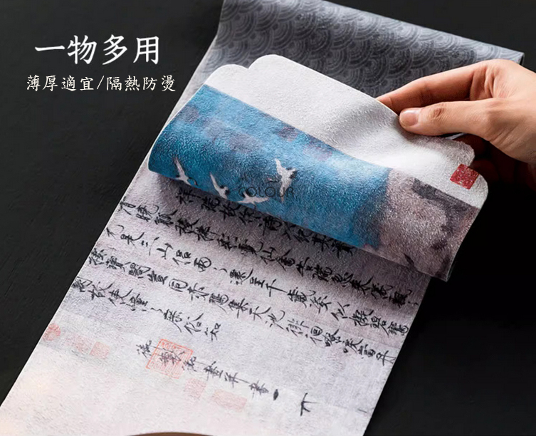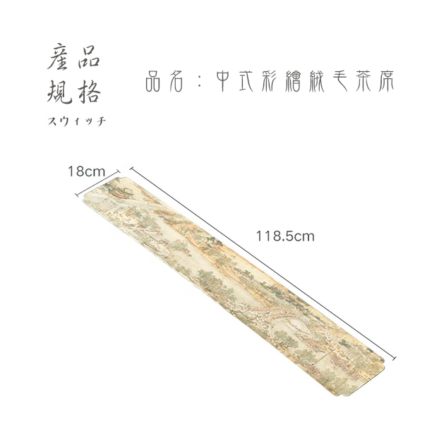 中式蘭亭序曲蘭絨毛茶席 下單請備註款式【曲蘭、蘭亭序】 嚴格挑選優絨毛 具有良好的吸濕盒放濕性能 天然纖維 對皮膚無刺激 桌旗用於茶桌的背景鋪設 劃分區域 襯托茶器 散發出濃烈的中式氣息 高雅氣質 從本薪出發 為茶道而生 商品尺寸:寬18CM / 長118.5CM