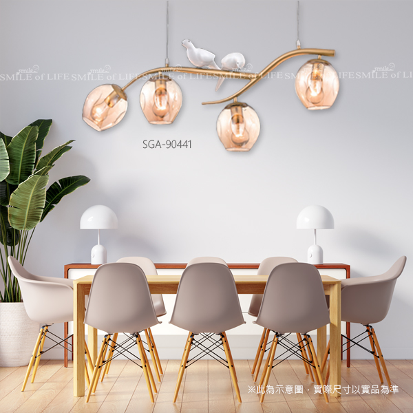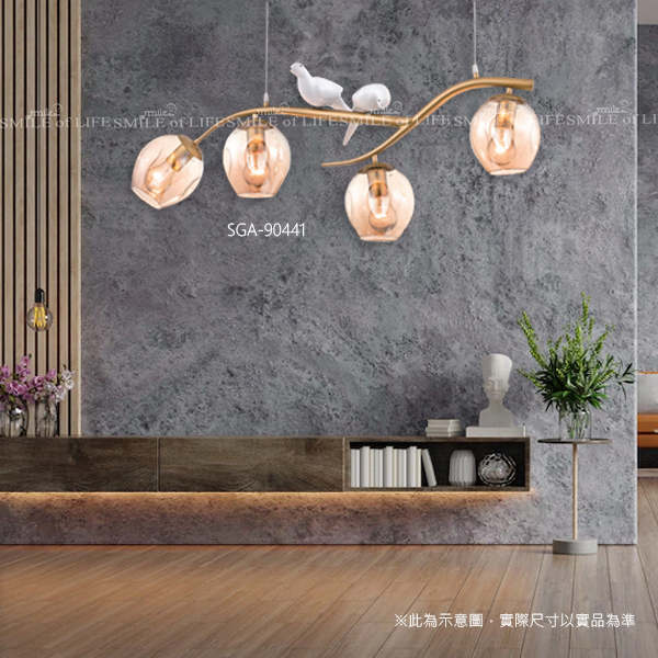 優雅春意餐吊燈 北歐居家裝飾和鳥提升幸福溫馨感 將鳥引入室內 讓家散發自然純淨 卻不失質感典雅氣息 商品規格: 【GA10-4324 商品規格】 尺寸:L950mm W150mm H390mm 線長:1000mm 光源:E27X4 另計 材質:鐵材烤古銅漆、琥珀色玻璃、樹脂鳥