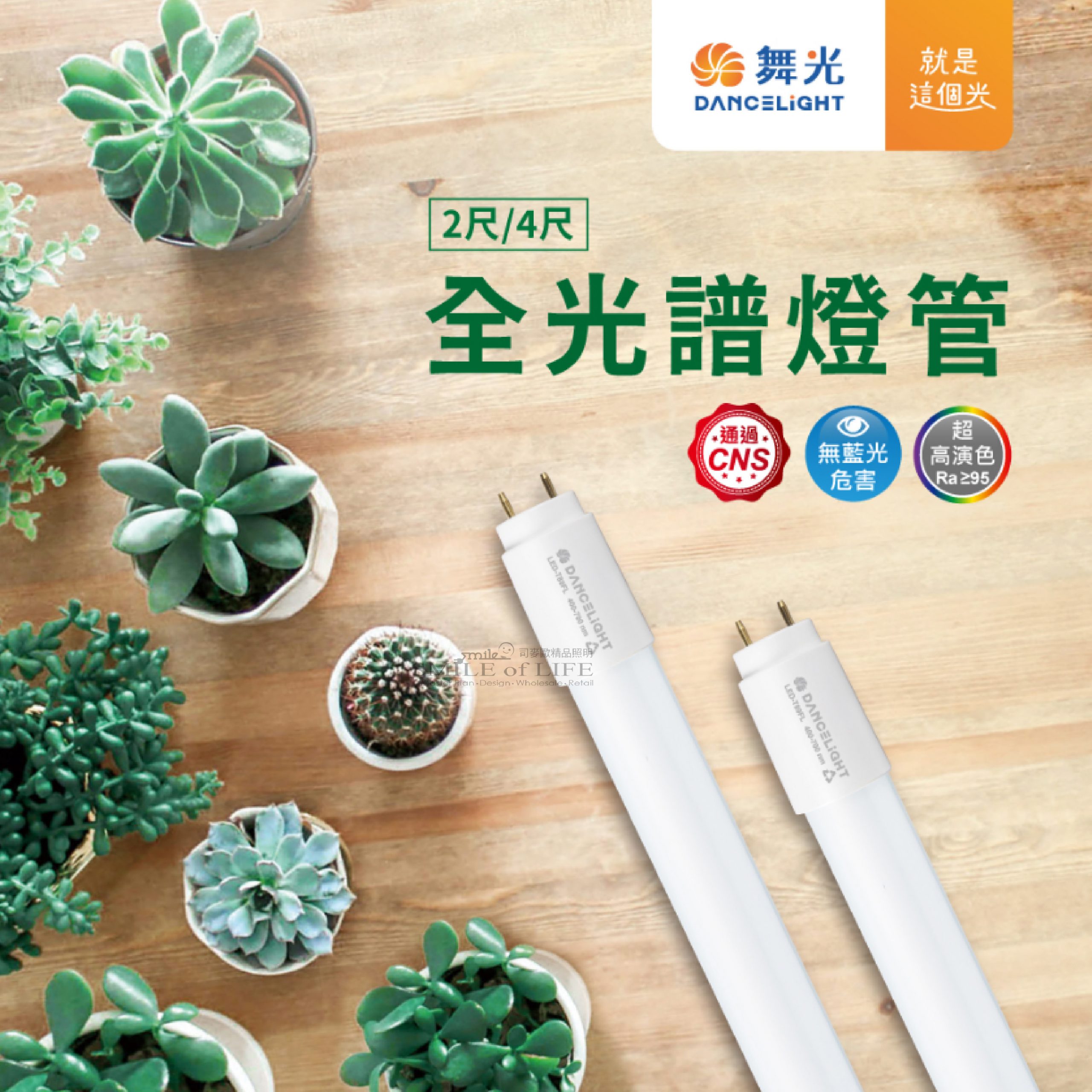 全光譜燈管-植物適用 業界首家擁有CNS認證的全光譜燈管! 透過模擬陽光的光譜 發射適合於光合作用的電磁波譜 促進植物達到有效生長 讓室內種植不再受到天氣影響 大大滿足植物的光照需求! ✦ 可搭配LED T8燈具使用 ✦ 促進植物生長 ✦ 增添對植物生長有效之光能量 ✦ 建議植物照射距離為30-50公分 ✦ 戶外使用建議搭配舞光防潮燈具 / ※植物最適生長環境仍需針對陽光、空氣、水、養分做整體評估