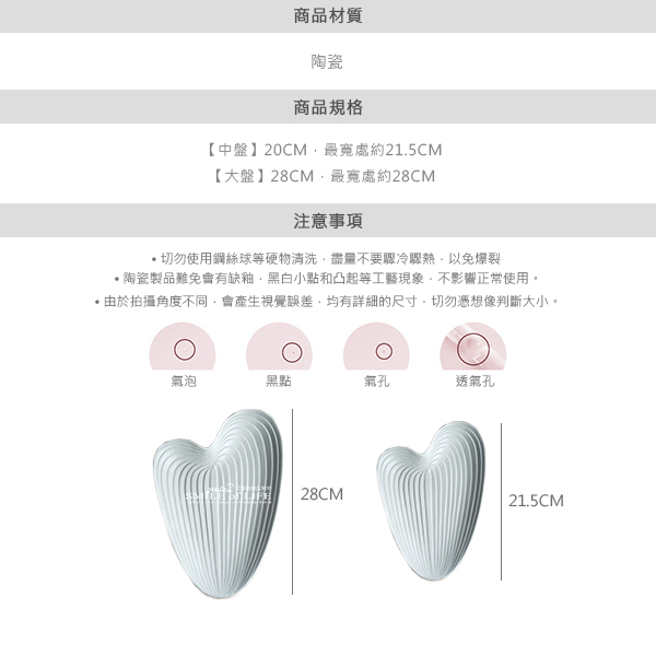 出口單條紋簡約創意水果盤【中盤/大盤】 生活是自己的,盡情裝扮!盡情可愛! 來一點不一樣的餐盤裝飾您的生活吧~~ 出口單品,造型非常有設計感, - 獨特的心型,弧度優美,瓷質略帶光澤 盤面紋理清晰質感再加分✨✨ 當玄關擺放鑰匙雜物,也可以當餐盤或果盤🥰 商品規格: 中盤:20CM [最寬處約21.5CM] 大盤:28CM [最寬處約28CM]