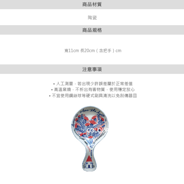 美國 A*n陶瓷手繪醬料碟 採用精陶製作,釉下彩工藝, 適合微波爐及洗碗機 尺寸為手工測量, 拍照光線與螢幕顯色都會有些微不同, 介意者勿拍 進口商品或有瑕疵 小刮痕 黑點之類 在所難免 再好的產品也難讓所有人都滿意,要求完美的顧客 遠觀就好請慎拍哦! 商品規格: 寬 11cm 長 20cm(含把手 )