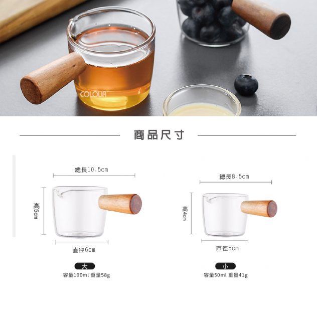 日式木柄玻璃奶盅 小清新玻璃餐具 通透輕盈 可愛簡約的風格 讓生活變得生動有趣 遇見好餐具 讓每一餐都賞心悅目! 【商品尺寸】 小號:總長8.5cm 高4cm / 容量 50ml 大號:總長10.5cm 高5cm / 容量 100ml