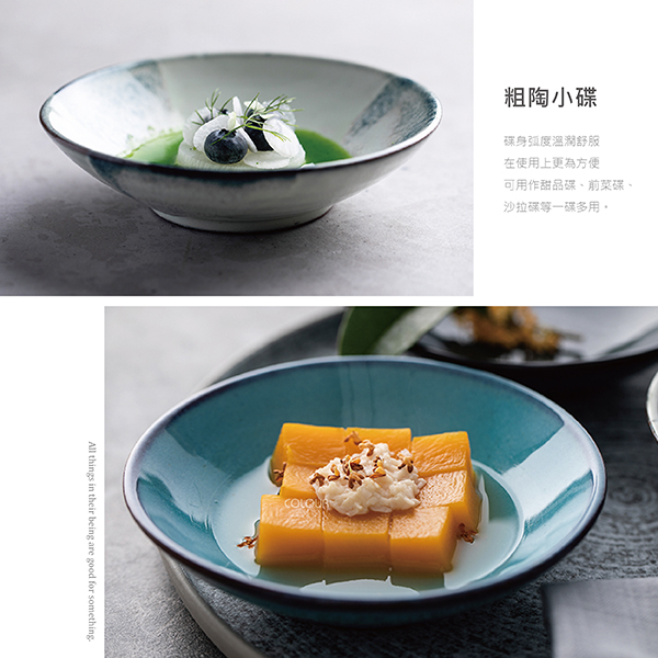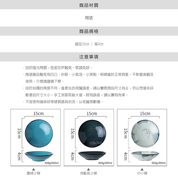 創意粗陶小碟子【三色】 簡單大氣,色澤清雅 花紋如素色蘭花 清雅文藝 適合盛裝冷色調的菜餚甜品 可用作甜品盤、涼菜盤等一碟多用 商品尺寸 直徑15cm / 高4cm