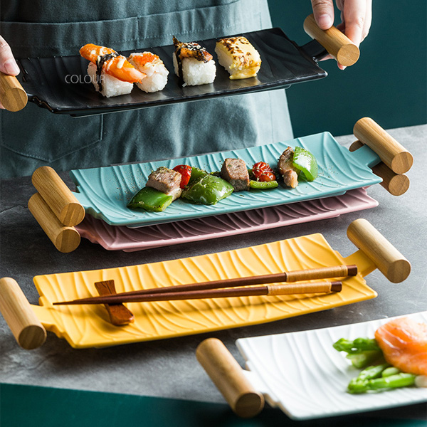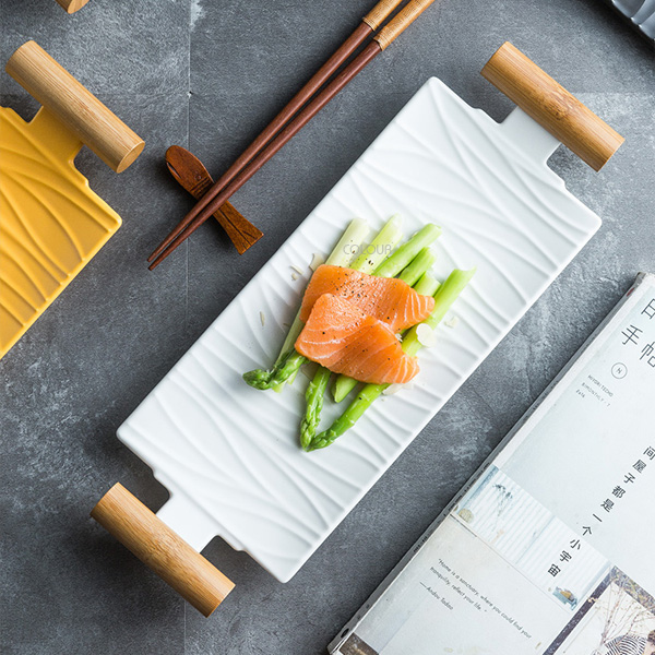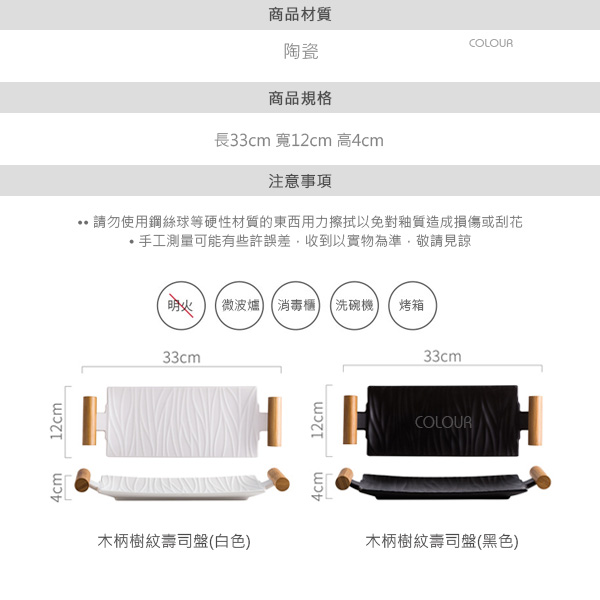 創意長方形雙耳壽司盤【黑/白】 烹飪 享受的不僅僅是食物的美味 更是其帶來的幸福時光 這組木柄壽司盤 光滑細膩的釉面 舒適雙柄設計 拿取方便 顏色素雅 讓你在使用時心情更愉悅 平時裝點壽司、刺身、水果沙拉 或當小菜盤都很不錯! 商品尺寸 長33cm 寬12cm 高4cm