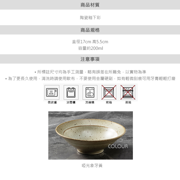 直徑17cm 高5.5cm 容量約200ml