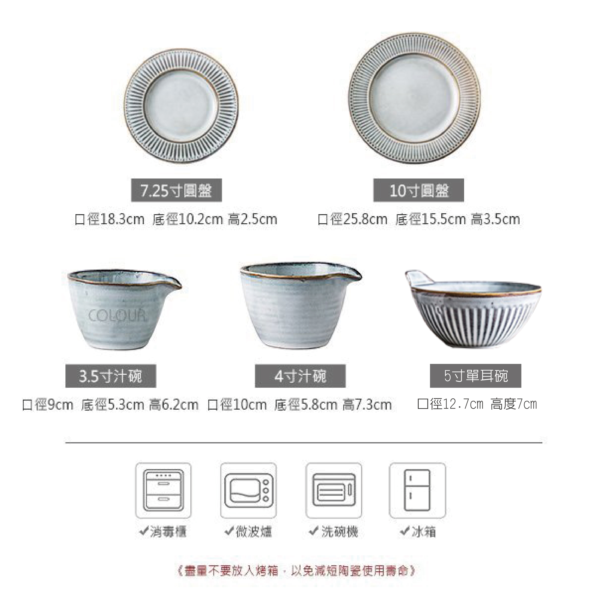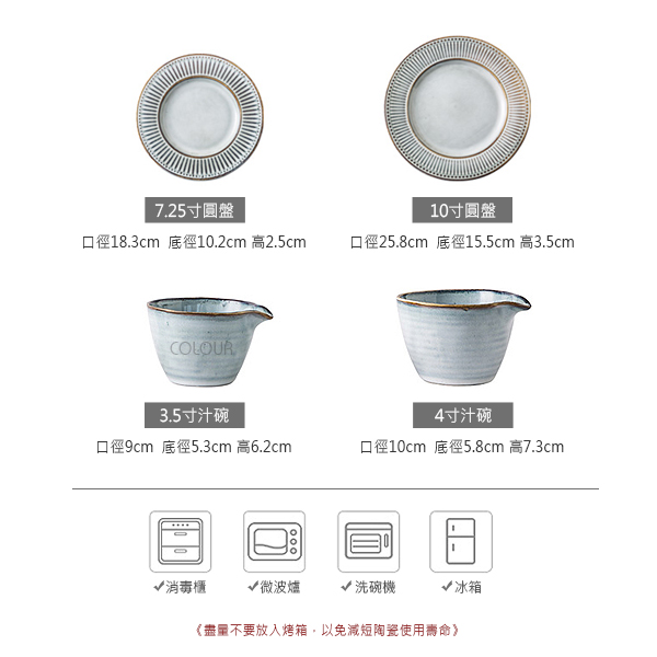 【7.25吋圓盤/10吋圓盤/4吋汁碗/5吋單耳碗】