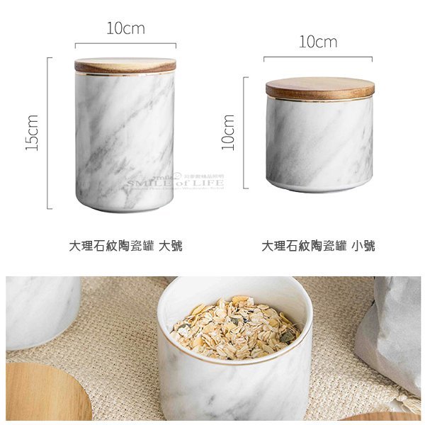 北歐風大理石紋儲物罐【大號】 全手工製作,獨居匠人精神 極簡大理石紋,簡潔且質樸 儲物罐帶有防塵密封蓋 可有效隔絕異味空氣 【商品尺寸】 大號儲物罐: 直徑約10cm / 高15cm
