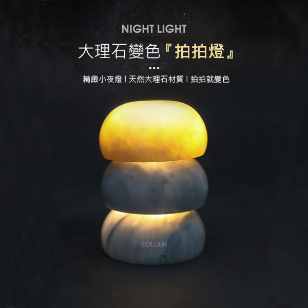 精緻小夜燈,天然大理石材質,拍拍就變色。