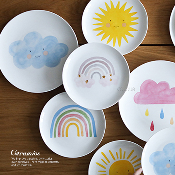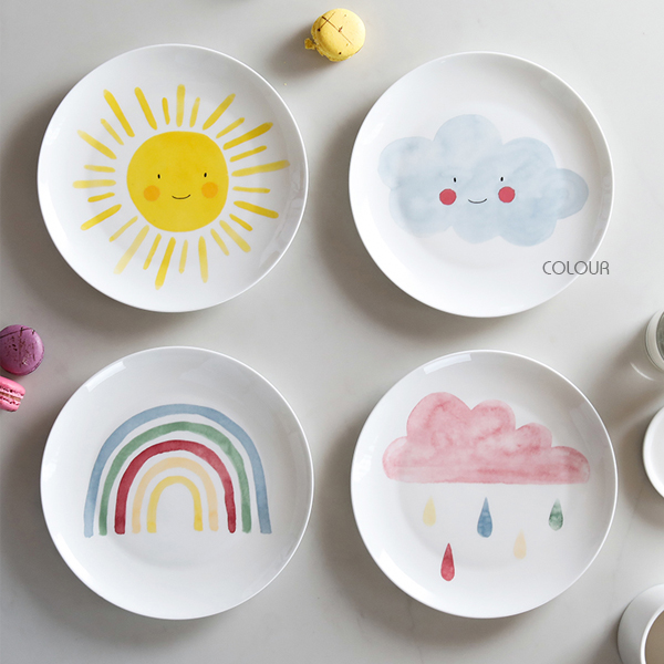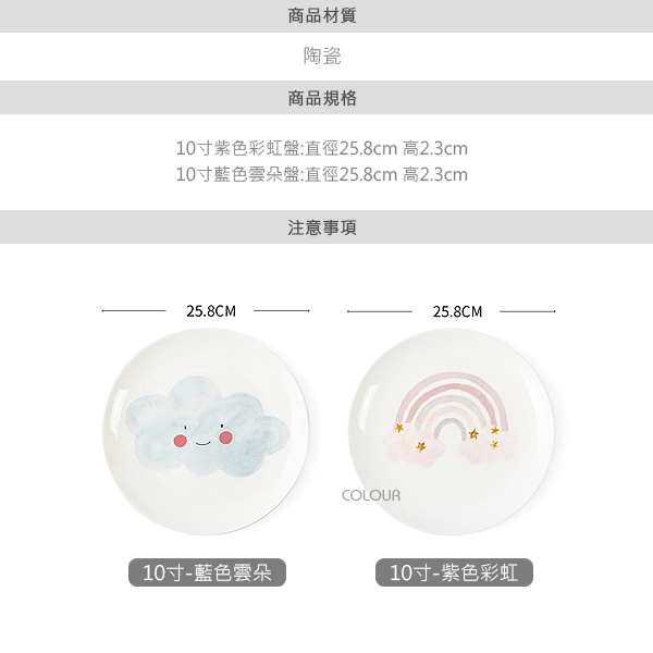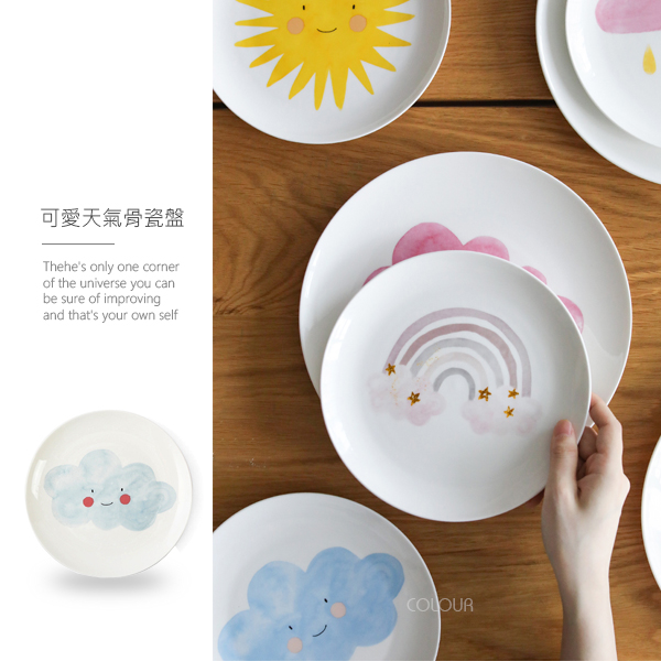 天氣系列陶瓷10吋盤 骨瓷材質瓷質白皙細膩 手感圓潤順滑 右面光滑易清洗 溫潤潔白的瓷面上 可愛童真圖案讓人擁有美好的心情💞 【商品尺寸】直徑約25.8cm