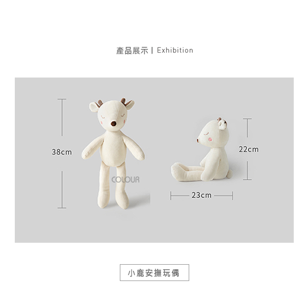 寶寶送禮首選【小鹿安撫玩偶】 萌萌的鹿角和耳朵 溫暖安靜的表情充滿童真 眼睛腮紅綉花精緻 身體面料手感特別棒 可愛的小尾巴 內置環保顆粒可以坐立 手感柔軟放心揉捏 【商品尺寸】高38cm 寬23cm