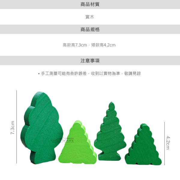 小樹實木積木模型【四款一組】 **四款一組顏色隨機出貨** 綠樹小樹,實木製作 造型可愛的積木讓小孩玩的開心, 也可用於森林、農場、軌道等場景配件。 商品規格: 高款高7.3cm,矮款高4.2cm。