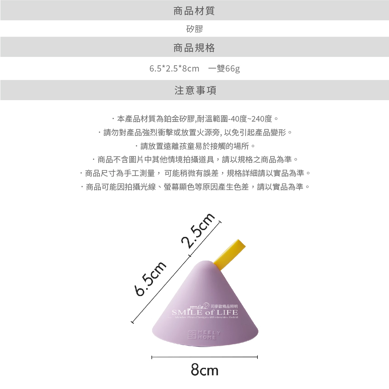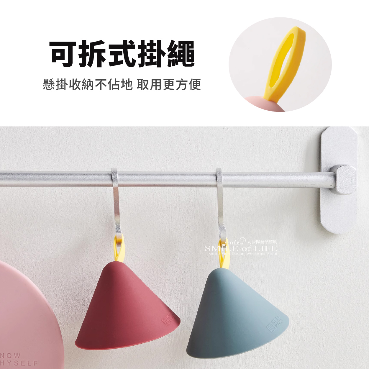 韓式矽膠防燙鍋蓋帽 以俏皮的三角造型設計 為廚房增添一份趣味與實用性 小巧的外型便於收納,高品質矽膠材質 不僅能有效隔熱,保護您的雙手 還具有出色的防滑效果 讓您在處理熱鍋具時更加安全 商品尺寸:直徑8cm 斜邊6.5cm 掛繩2.5cm
