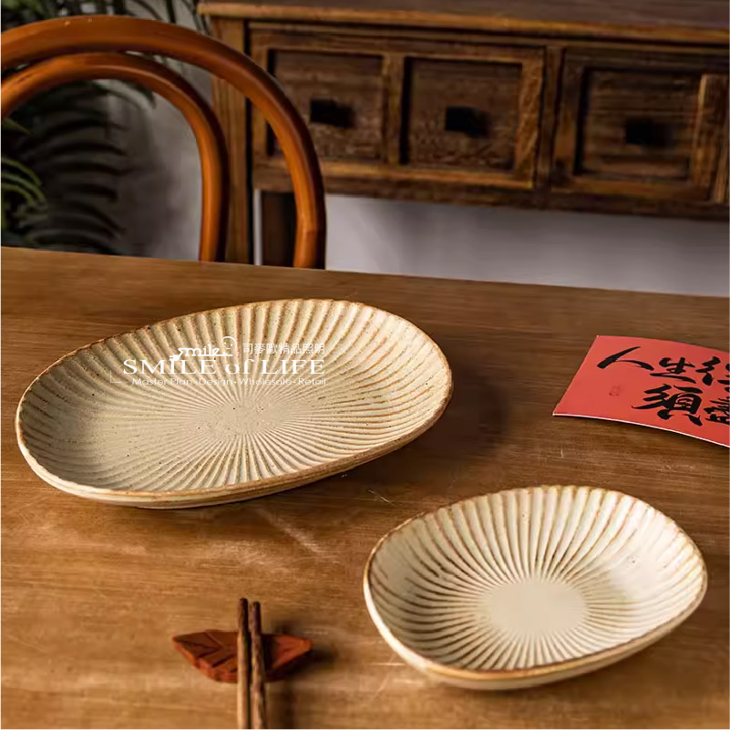 |復古粗陶手工日料盤|