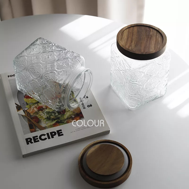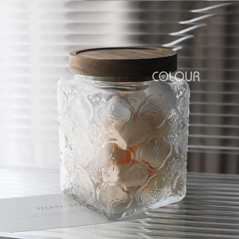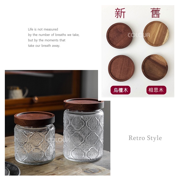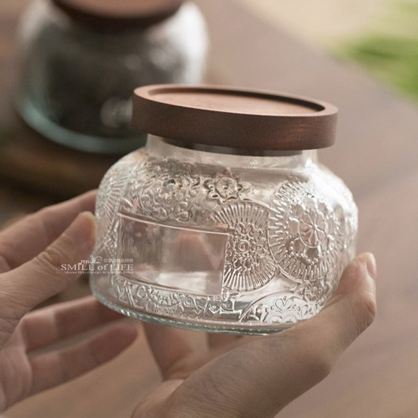 復古風刻花浮雕玻璃密封罐 復古老式壓花設計 玻璃較厚實非輕薄 搭配實木木蓋更顯質感 - 比一般的玻璃瓶都要精緻 容量很大,可裝茶葉、乾糧 或是當餐具收納、筆筒都合適 窗花、窗格450ml款為烏檀木蓋 ** 【注意事項】 微波爐、電磁爐、烤箱、洗碗機皆不適用。 商品尺寸: 700ml:直徑9.8cm / 高14.3cm 450ml:直徑9.8cm / 高10cm 方形750ml :長9.3cm / 寬9.3cm 高14.3cm