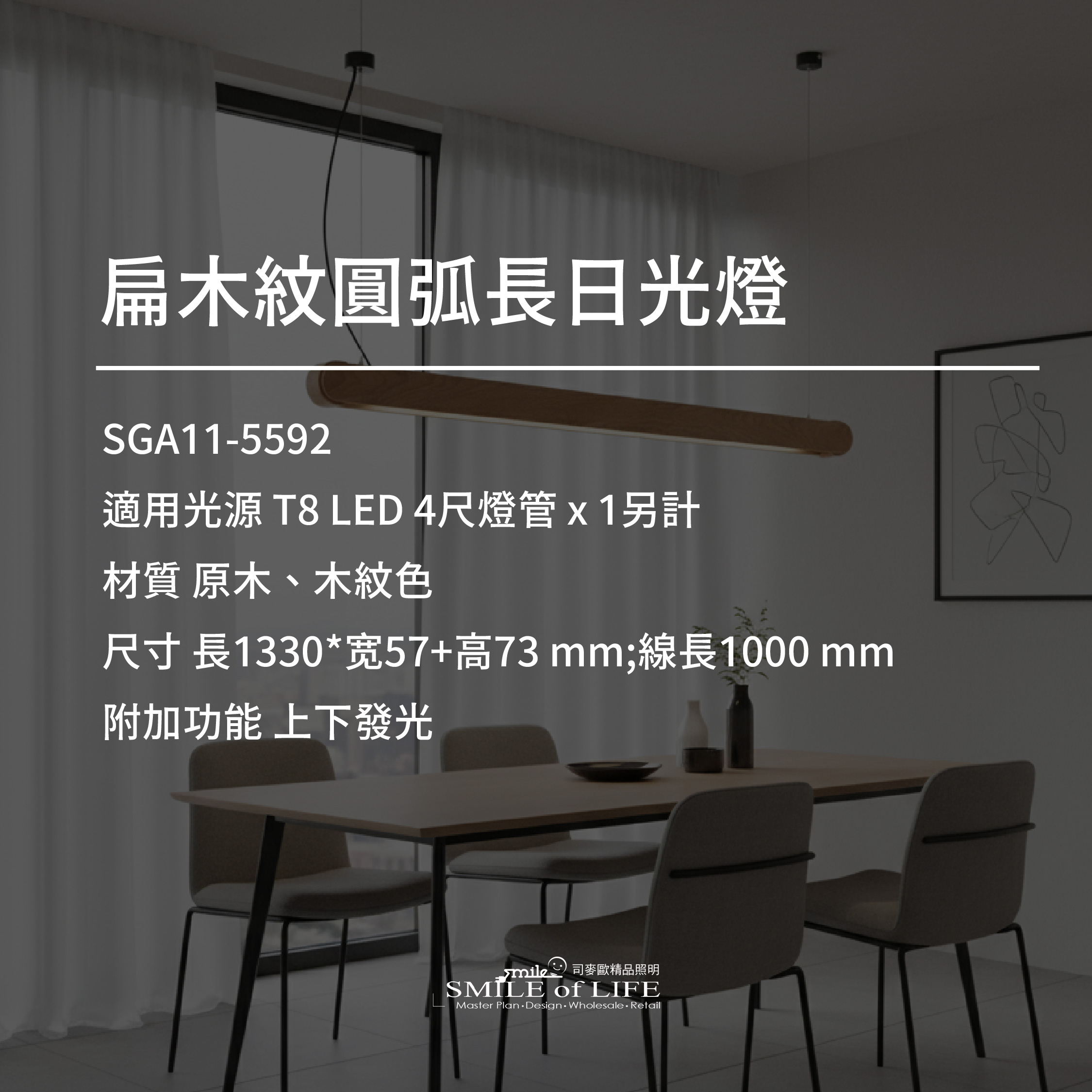 扁木紋圓弧長日光燈 SGA11-5592 以細膩的木紋質感結合流暢的圓弧造型, 長型燈體輕盈俐落,卻蘊藏滿滿溫度。 柔光漫射、不刺眼,完美融入書房、餐桌或玄關, 為空間增添一份自然又高雅的氣息。🌿 商品尺寸:適用光源 T8 LED 4尺燈管 x 1另計 材質 原木、木紋色 尺寸 長1330*宽57+高73 mm;線長1000 mm 附加功能 上下發光![]()
