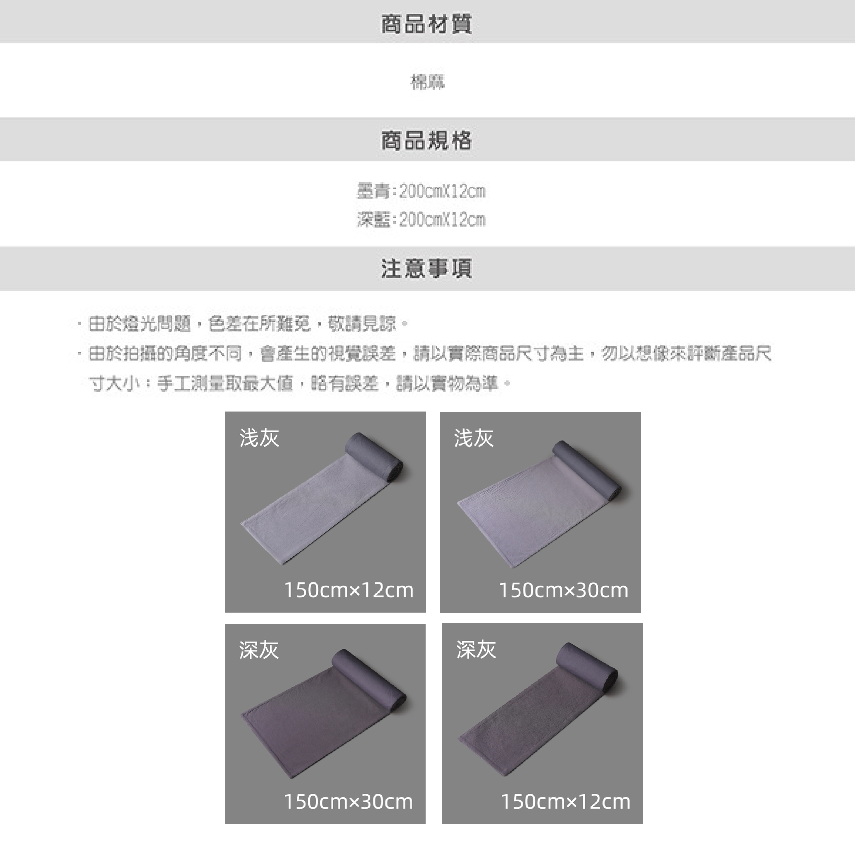 深灰色150cmX12cm, 深灰色150cmX30cm, 淺灰色150cmX12cm, 淺灰色150cmX30cm