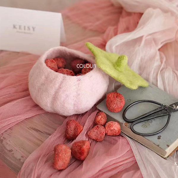 手工療癒羊毛氈南瓜桶【番茄紅/香芋粉】 羊毛氈是一種古老悠久的織物 關於使用羊毛氈的最早記錄是公元前6500年, 距今已有八千多年的歷史 直到現在仍然是生活中的必需品 羊毛氈具備結實、防水、耐磨、重量輕、不易破損 可愛南瓜造型 適合用於收納小物 也能插花 純手工製作,尺寸大小形狀稍有不同, 手工製品沒有辦法保證一模一樣喔 商品規格: 【番茄紅】寬12cm 高7.5cm 【香芋粉】寬12cm 高7.5cm