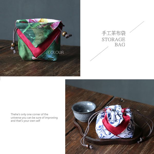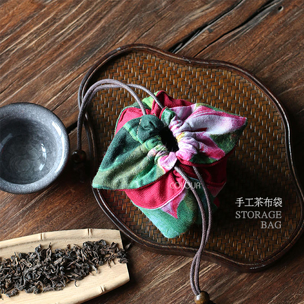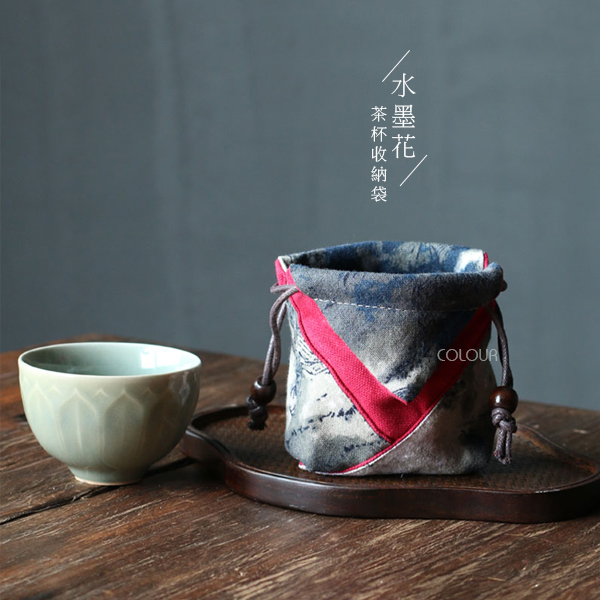 手工雙層棉麻布袋【綠色/白底花/水墨】