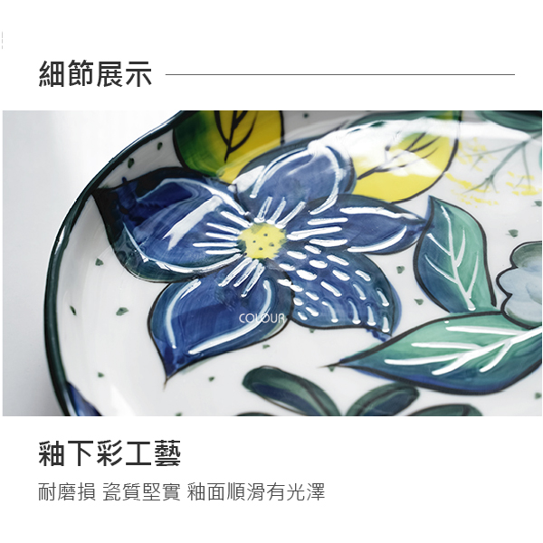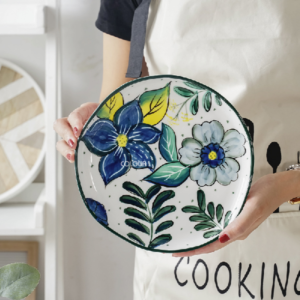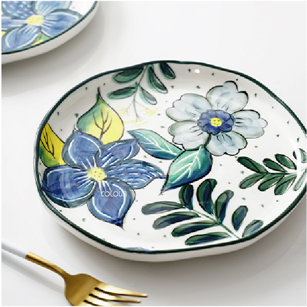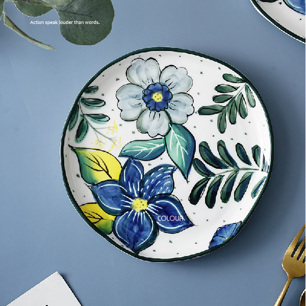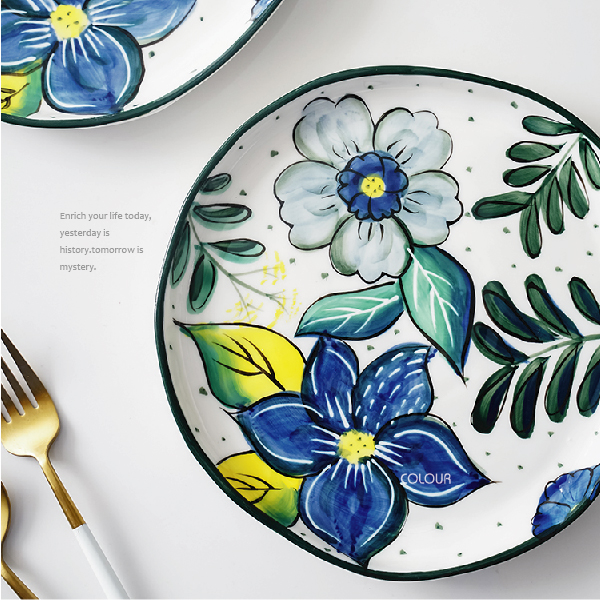 手繪花朵餐盤系列, 耐磨,瓷質堅實, 釉面順滑有光澤, 流暢的線條, 美觀的圖案通過瓷器的展現, 將藝術融入人們的日常生活。