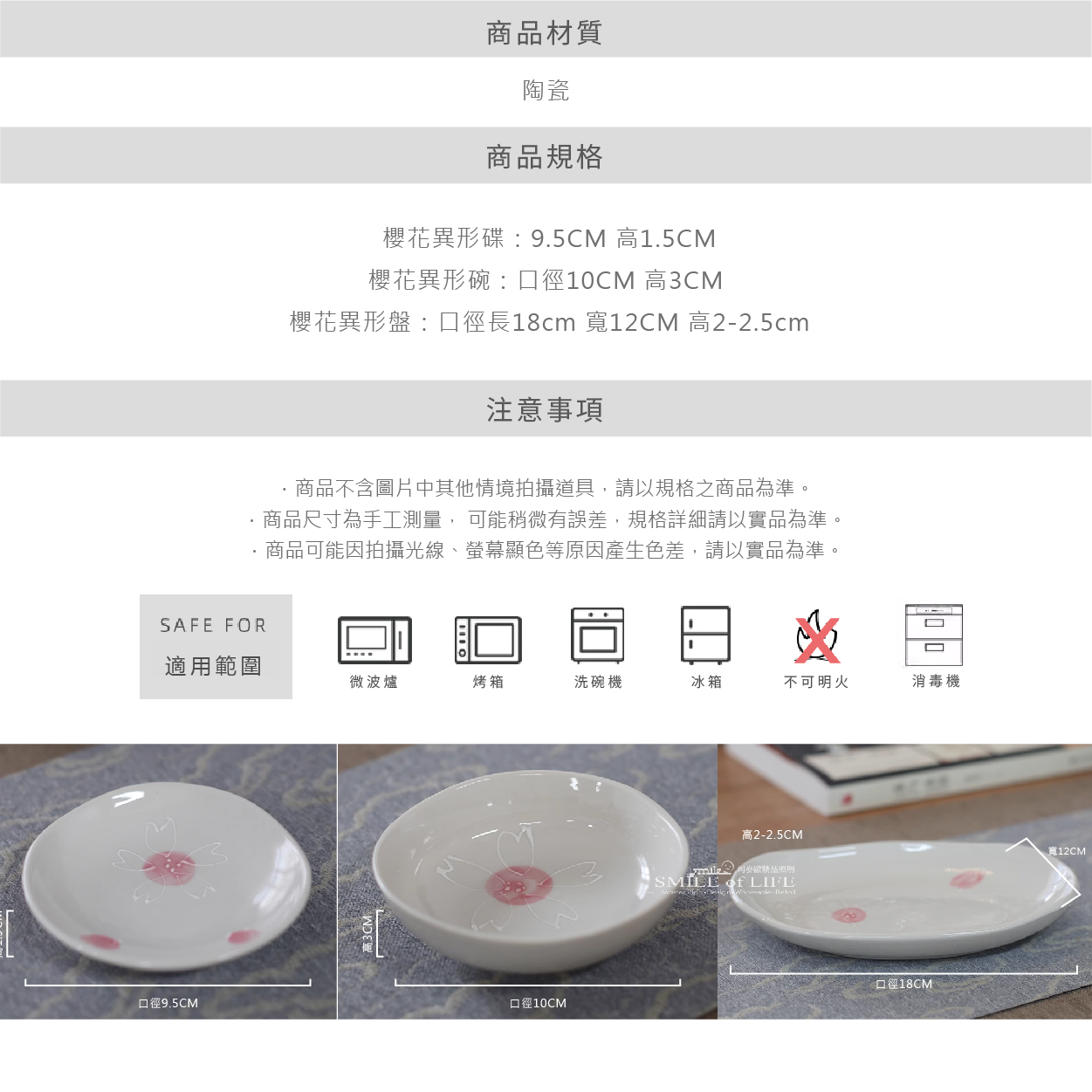 手繪釉下彩櫻花陶瓷餐具 每一片櫻花圖案都由匠人手繪而成 釉下彩工藝讓圖案色澤柔和、歷久彌新 碟子形狀優雅,配上綻放的櫻花圖案 宛如春日盛開的櫻花樹,為您的餐桌增添一抹雅緻的自然風情 無論是搭配醬料、佐料,還是用於點綴甜品 這款醬料碟都能讓每一餐都宛如春日賞櫻的美好時光! 商品尺寸 異形碟:口徑9.5cm 高1.5cm 異形盤:口徑18cm 寬12cm 高2-2.5cm 異形碗:口徑10cm 高3cm![]()