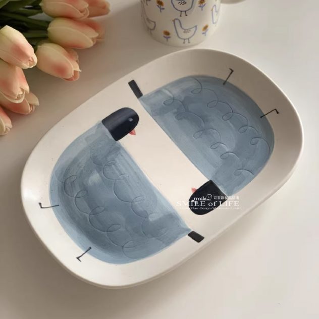 手繪鴨陶瓷盤/藍色窯變4.5吋碗 【日單可愛手繪鴨陶瓷盤】 將可愛與實用完美結合 獨特的日式設計,讓小鴨栩栩如生 為餐桌增添一抹俏皮的色彩 讓每一餐都像在品味童話般的美好 尺寸▸長21.5cm 高3cm - 【霧面藍陶瓷碗】 低調而優雅,帶有獨特的日式美感 柔和的霧面質感讓碗身呈現出沉穩的藍色光澤, 為您的餐桌增添一絲寧靜之美 尺寸▸4.5吋碗:口徑12cm 高6cm![]()