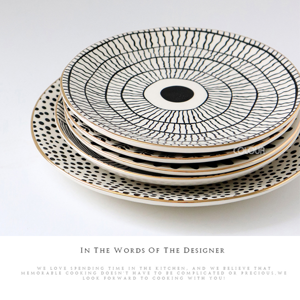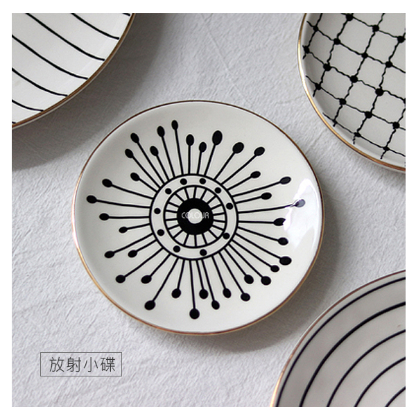 描金邊手彩繪陶瓷盤/小碟 放射狀線條 讓整體都生動活潑了起來 非常的俏皮可愛呢 註明:出口尾品多少有小小瑕疵 客人們留意哦! 瑕疵不會很大影響它的美觀,更不會影響它們的使用的。 【商品尺寸】 陶瓷盤-直徑20cm 小碟-直徑13.5cm