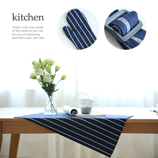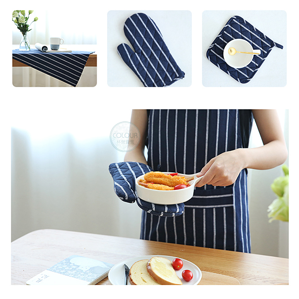 日式清新風格深藍色圍裙+隔熱手套,讓你料理時也能隨時充滿好心情