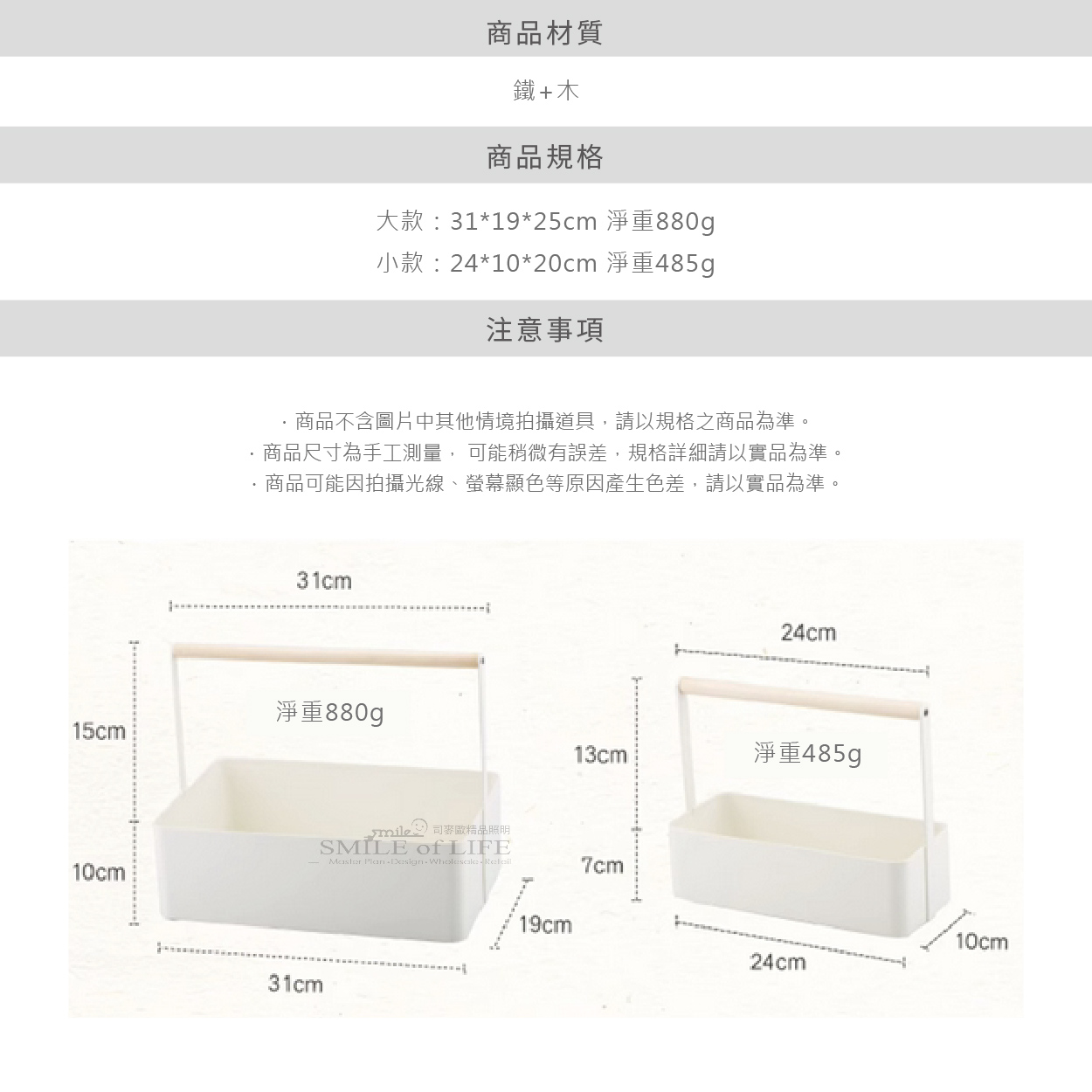 日式清新手提收納籃【大/小兩款】 這款日式清新木提手收納籃, 為家增添溫暖氛圍提升居家美感! - ● 簡約設計:融合日式清新風格,設計簡約,適合各種家居裝飾。 ● 多功能用途:可用於收納日常用品、化妝品、文具、廚房用品等。 ● 優質材質:採用環保耐用材質製成,堅固耐用,確保長期使用。 ● 便攜手提:附有舒適手提設計,方便移動和攜帶,滿足不同場景需求。 商品尺寸: 大款:31*19*25cm 淨重880g 小款:24*10*20cm 淨重485g