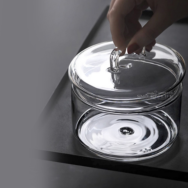 日式玻璃儲物罐 玻璃清晰透亮 整體圓潤細膩 質感輕盈 設計簡約 耐看耐用 - 裝能盛裝各種沖泡材料茶葉、花果乾等 或是放在桌面收納花妝棉、棉花棒 多種用途等你來發揮 ૮ ・ﻌ・ა 商品尺寸: 口徑約10.6cm 含蓋高約9.5cm 容量約400ml