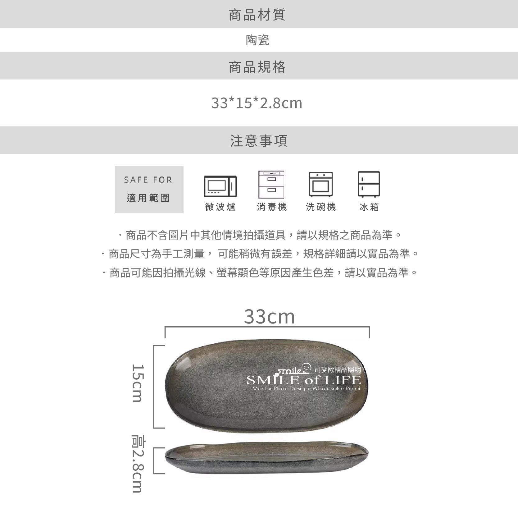 無論家用或餐廳擺盤都非常適合 【商品規格】 長度:33cm 寬度:15cm 高: 2.8cm