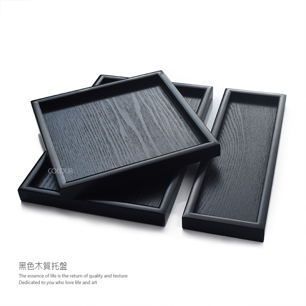 日式黑色正方形木質托盤