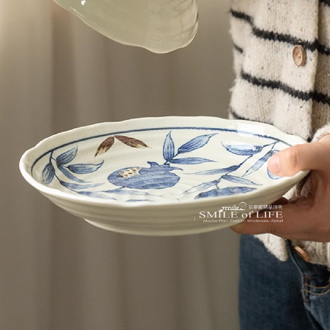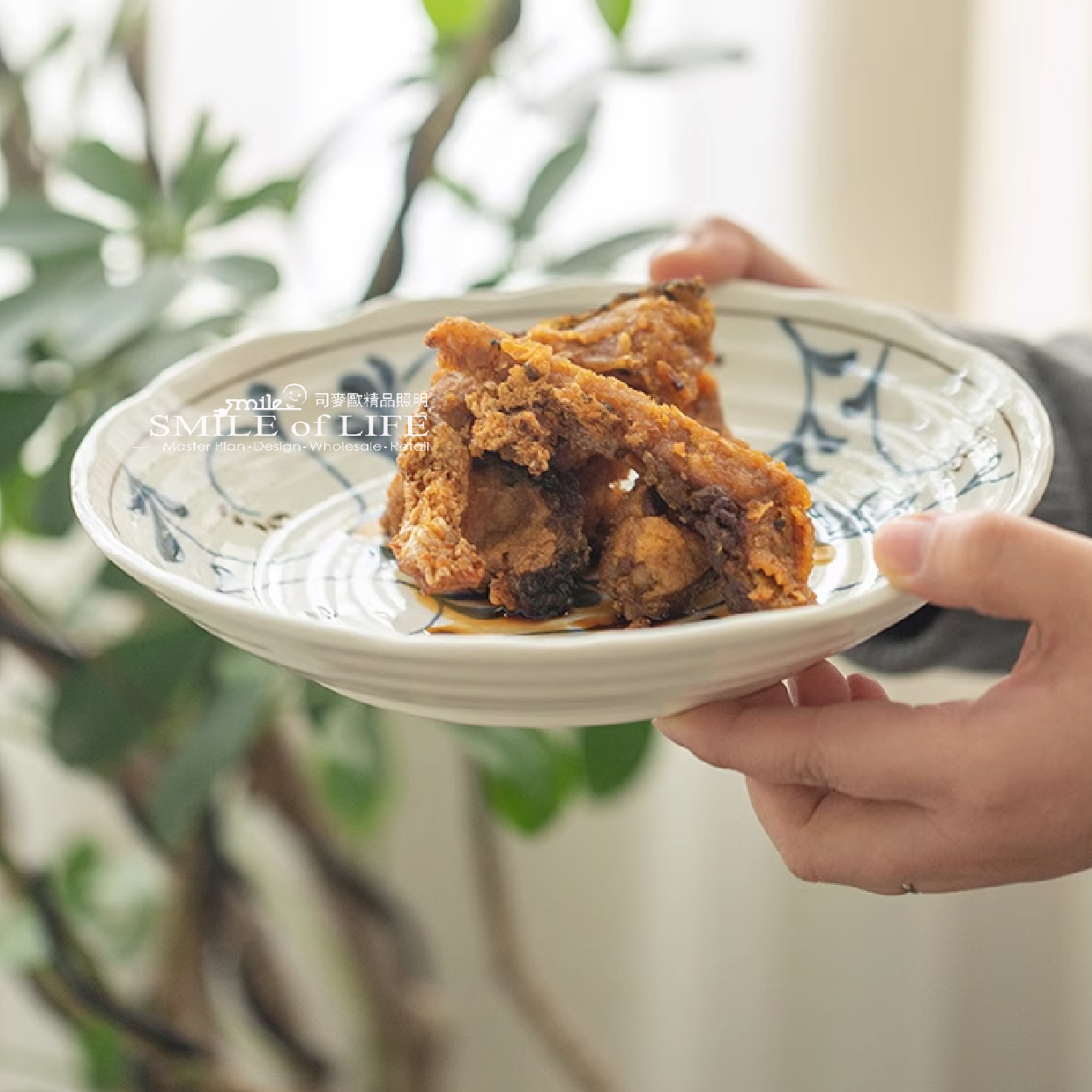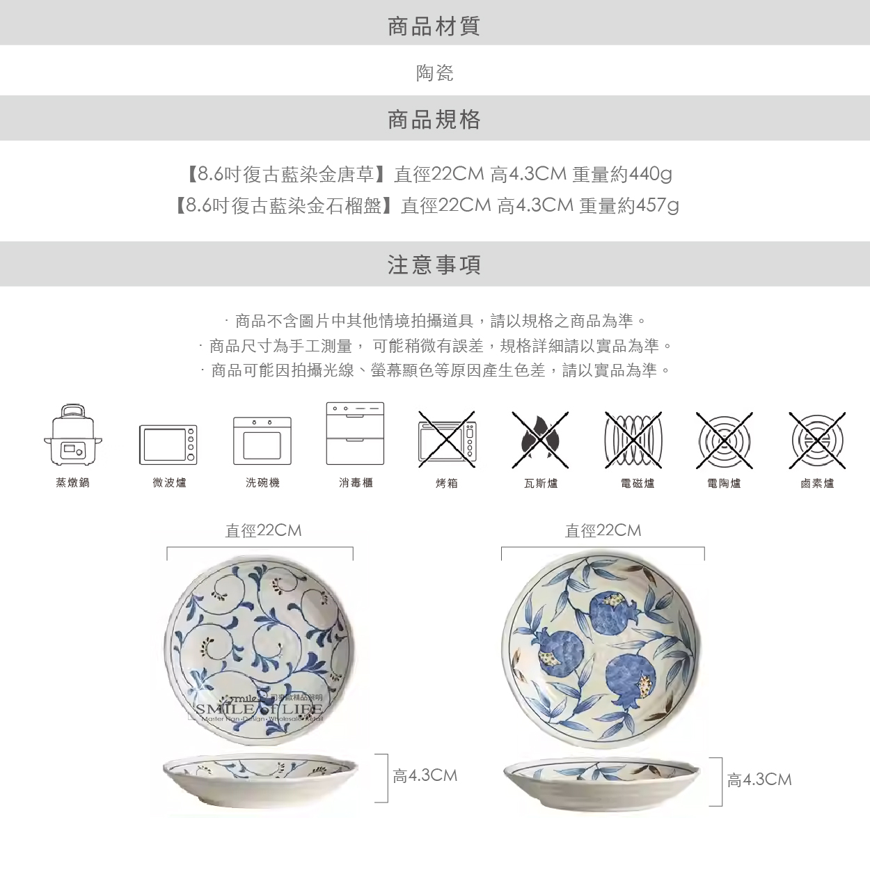 日本製手繪藍染陶瓷盤 漫步於日式花園,沉醉於復古的美好氛圍中。 彷彿是一幅美麗的藝術品,充滿優雅的韻味。 盤面採用優質陶瓷材質,質感細膩光滑, 散發濃郁的日式鄉村風情,為您的餐桌增添一抹優雅氛圍。 商品尺寸:直徑22cm 高4.3cm