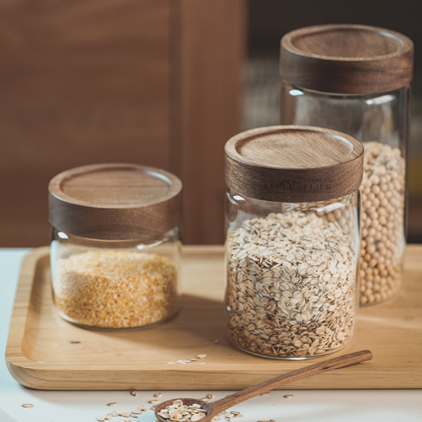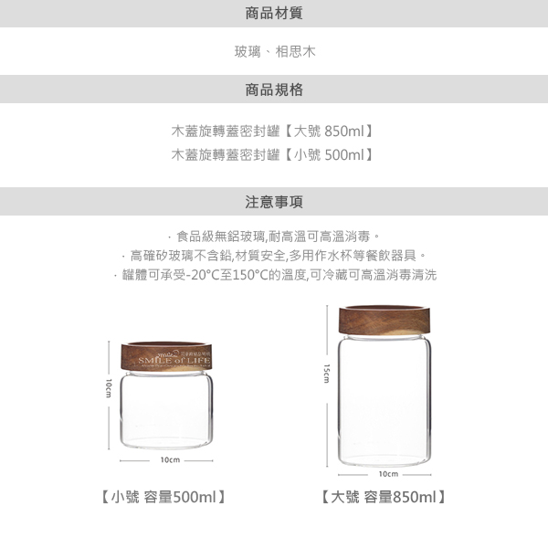 玻璃木蓋旋蓋密封罐500ml, 玻璃木蓋旋蓋密封罐850ml