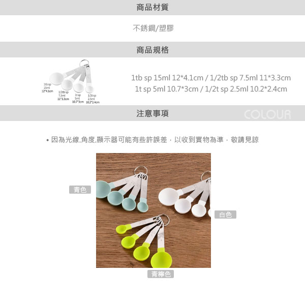 廚房烘焙刻度量勺 【青檸色/白色/青色】