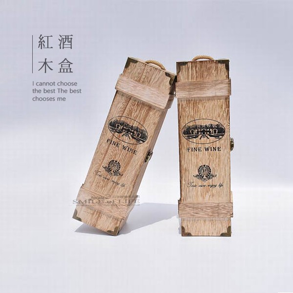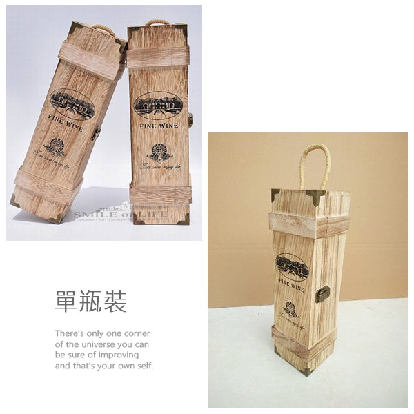 木質單支葡萄酒盒 木製品每一支的紋路及色澤都不一樣 這是他獨特的地方,每支都是獨一無二的 細節有故意做舊地方,木紋顯露,可能有木結、裂紋 釘眼、小污點、小缺角或是板子間有不完 全密合等現象,這屬自然的現象,不能算是瑕疵品 介意者請勿下標。 商品尺寸: 約35x9.5 x 9.5 cm
