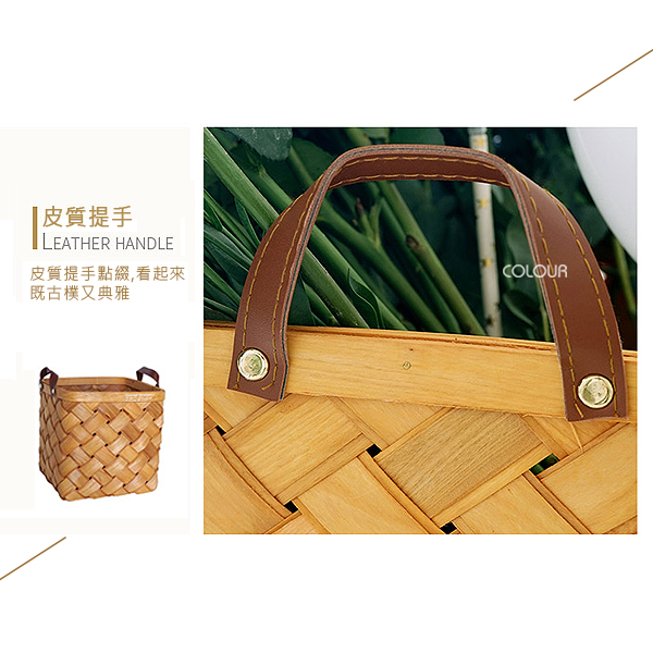 木質編織麵包籃【兩入組】 超值組合價(大+小) 閒暇時光… 挑上一件令人心動的物件 讓家更有溫暖的歸屬感 皮質提手看起來既復古又典雅 因為批次/材質的關係 會有深淺不一的色差情況 整體搭配效果還是非常和諧 介意的請慎重下單 色差不屬於瑕疵問題 【商品尺寸】請依圖上標示為主